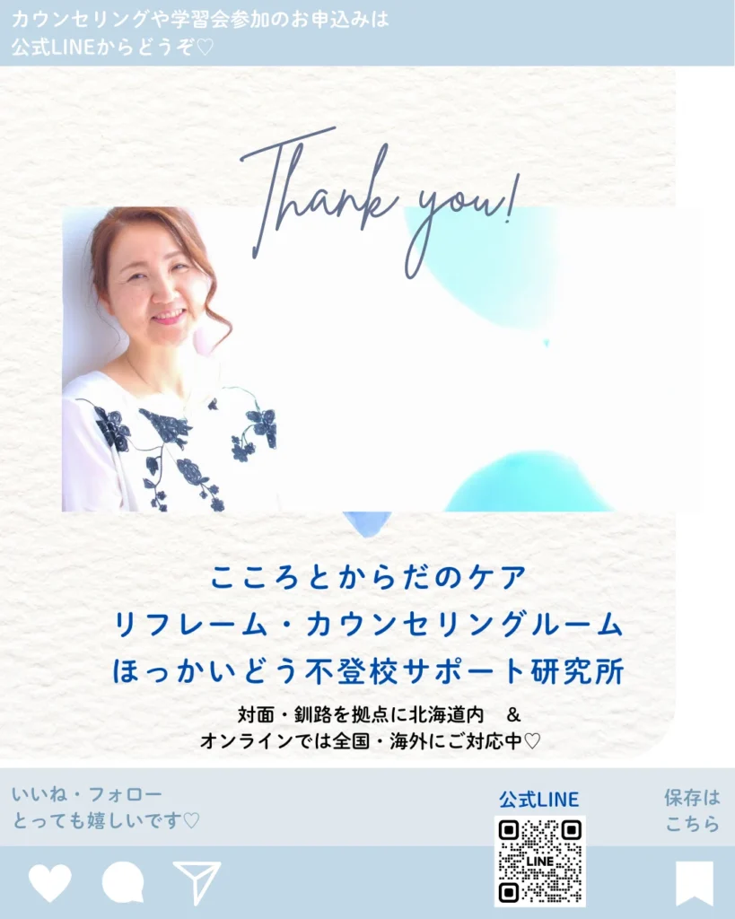 「日本家族と子どもセラピスト学会認定セラピスト資格保有」 リフレーム・カウンセリングルーム & ほっかいどう不登校サポート研究所 & 家族と子どもケア・サポートチーム 代表カウンセラー 平野なおみ